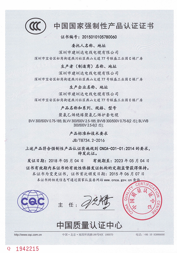 深圳建圳達(dá)電線電纜有限公司,成立于2000年,是一家電線電纜制造商,我們通過了世界各地不同市場的多數(shù)認(rèn)證,如:CCC、RoHS、CB、SAA、TUV、VDE、PSE、BPS、UL、CSA。我們根據(jù)定制產(chǎn)品不斷更新新的認(rèn)證。經(jīng)過數(shù)十年的發(fā)展,我們與來自世界各地的客戶建立了長期的合作關(guān)系。我們曾經(jīng)是菲律賓機場,,柬埔寨的電力站,美國的醫(yī)院,工廠,埃塞俄比亞的水電站項目。我們是一家值得信賴的電線供應(yīng)商。